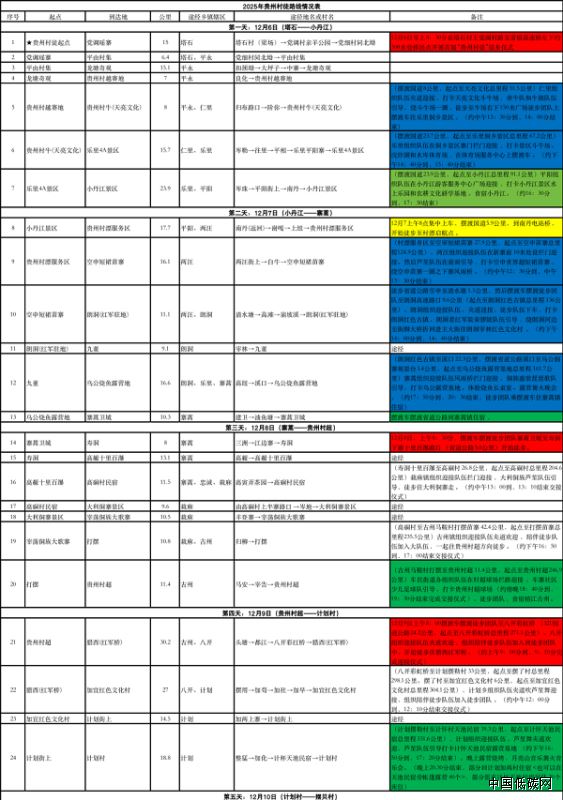 本次賽事從12月6日啟動(dòng)至12月12日收官,7天時(shí)間串聯(lián)起苗侗村寨、紅色遺址、山水奇觀,每天的行程都獨(dú)具特色: