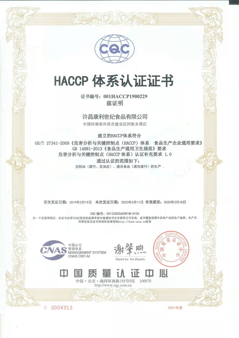 HACCP體系認證證書
